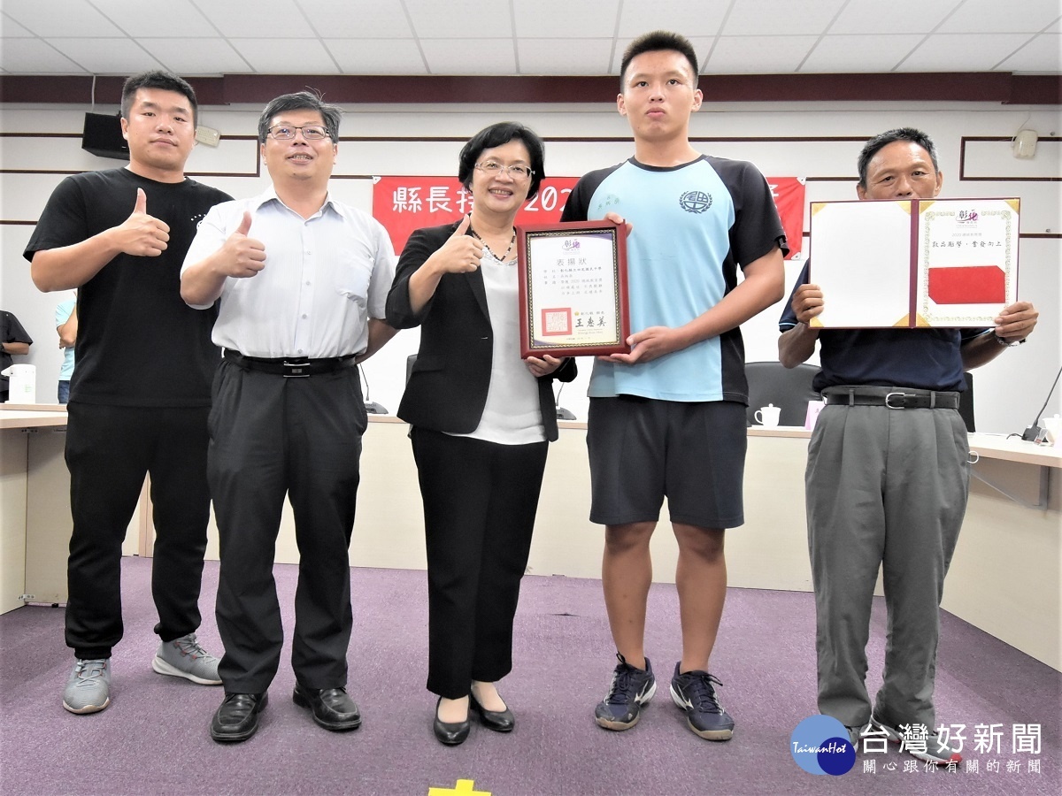 王縣長說,今年總統教育獎由全國各級學校推薦的350名學生中,經初選再經複審評選委員實地訪視深入了解後,召開複審評選會議推薦各組獲獎名單,並提至總統教育獎委員會審議通過,最終只有56位學生得到這項殊榮,彰化縣就有5人得獎,非常難得。