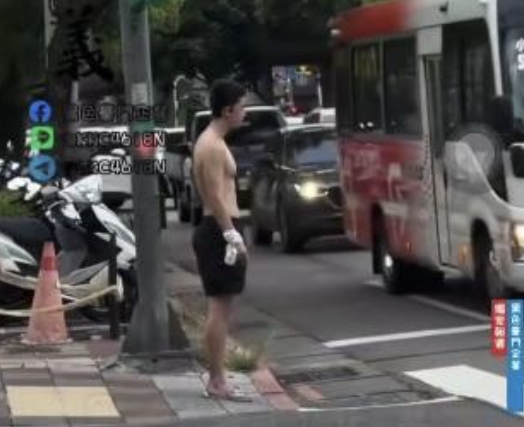 ▲孫安佐被發現上身赤裸呆站路邊。(圖/記者翻攝)