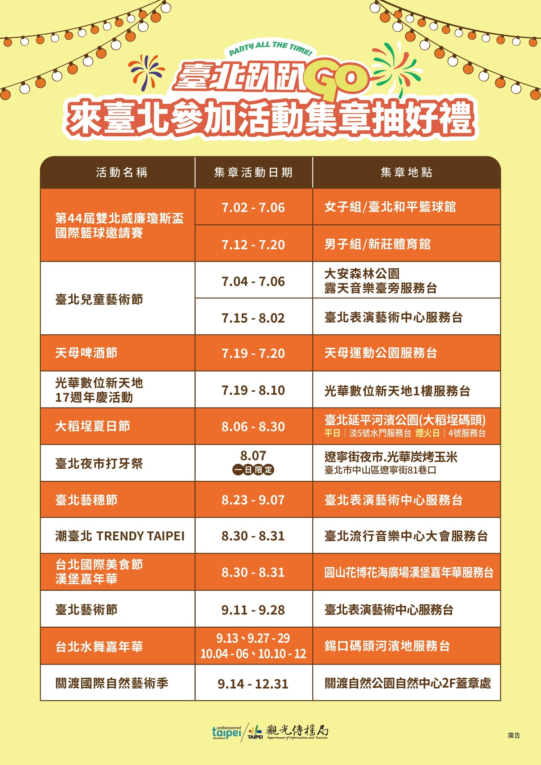 ▲ 臺北7-9月共12場大型活動,邀您來玩樂並參加集章抽好禮。(圖/觀傳局)