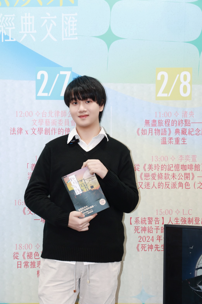 分享會一開場,渚央便以獨特的「厭世幽默」逗樂全場。自述剛結束自學生活、進入日文系就讀大一的他,直言2025年是「悲慘的一年」,笑稱從無憂無慮的自學生變成大學生是「從天堂墜入地獄」。他引用筆下角色台詞打趣道:「作家如果不夠恨這個世界的話,是沒辦法產生寫作靈感的;但如果不夠愛這個世界的話,也是沒辦法將靈感實際寫成故事的。」