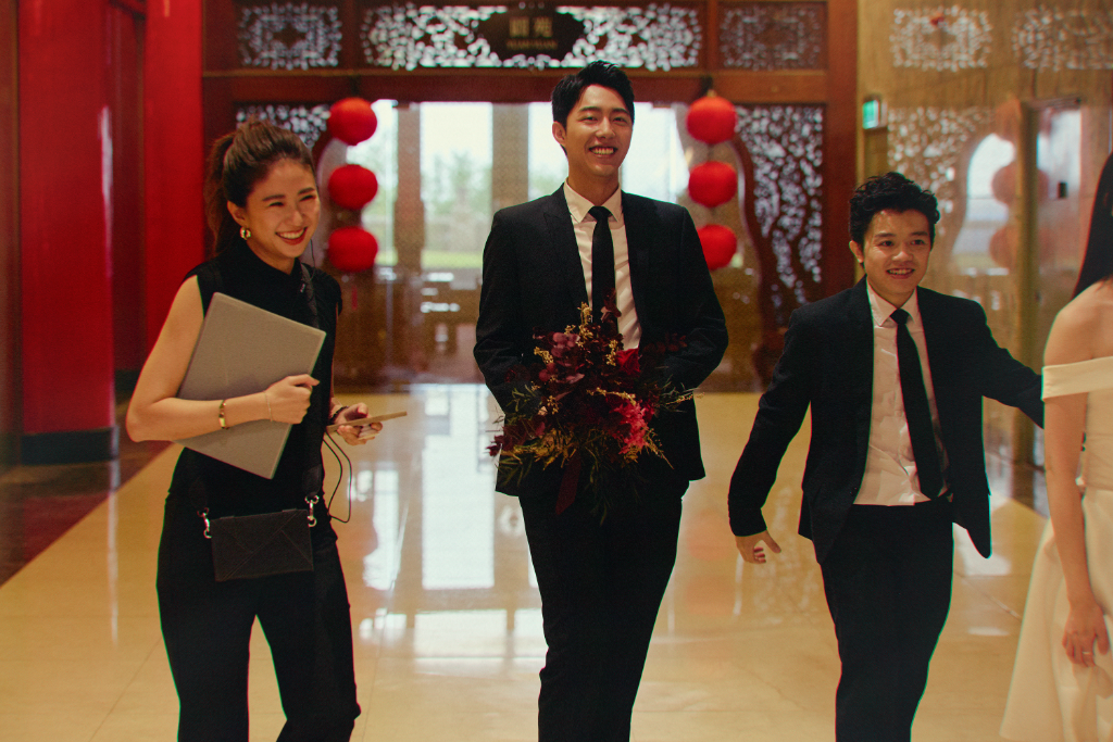 ▲ 9m88(左起)、蔡凡熙、洪群鈞.,在《雙囍》中擔任新郎最強後援團隊。(圖:水花電影)