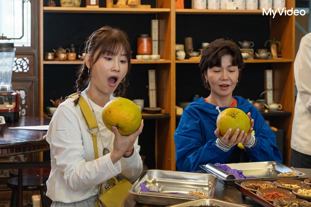 談到旅途中最難忘的行程,朱芷瑩對苗栗的客家文化印象深刻,從桑耶寺、雲南食府、多多龍果園到與黃金獵犬互動,每一站都充滿驚喜,其中最讓她回味再三的,是酸柑茶的味道。「那不只是一杯茶,而是時間、傳承與客家歷史的累積,那個味道我到現在都記得。」施名帥則對回到獅潭、造訪雲南食府特別感動,看見店家一家人為他們用心準備,加上巧遇仙草花節的美景,讓他直呼「真的很驚喜,也很感動」。