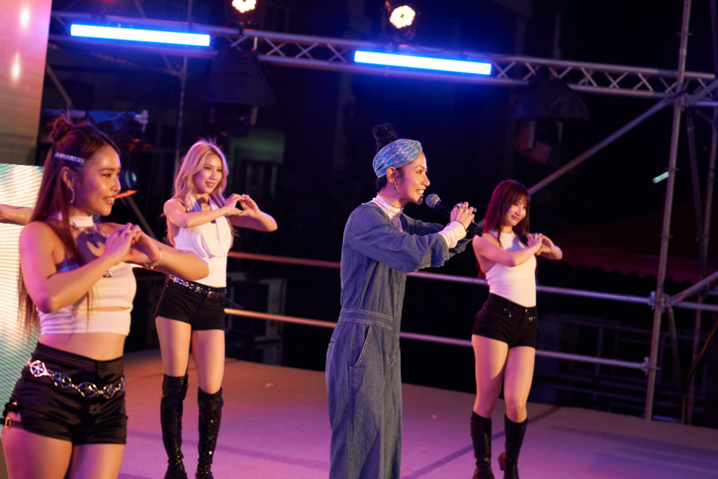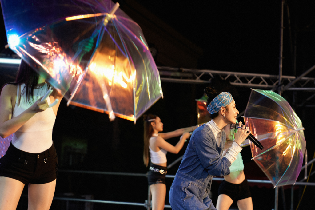 現場氣氛熱烈,鄉親們一邊領取百粿、一邊期待晚間演出,笑稱這場盛典是「包吃、包唱、包好運!」晚間演出她更帶著舞者南下與大家同樂,演唱全新台語翻唱專輯《千娜舞台秀 - 彼段過去經過阮兜口》中的〈胭脂馬拄到關老爺〉、〈愛情研究院〉、〈愛人醉落去〉與〈望月想愛人〉等經典歌曲,重新編排詮釋,讓現場氣氛熱鬧滾滾。雖然此次無法將傳說中的百萬電子花車開到現場,但舞台設計與歌曲編排依然保留那份精神與情懷。