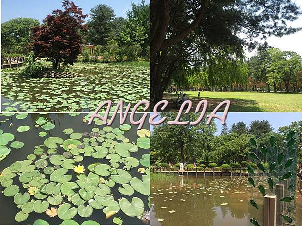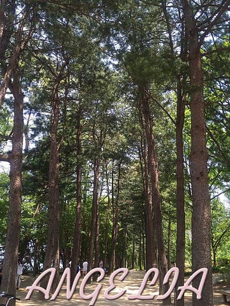 進來裡頭蠻大的,有點像台灣的杉林溪…經過這個棚架時看到很多葉片形狀的許願籤,上頭大家寫了一堆韓文