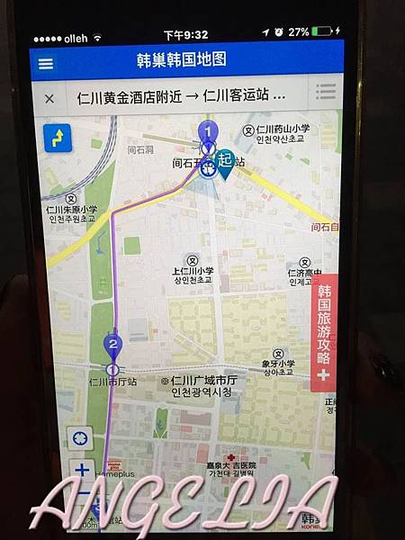 從手機APP下載蜂巢韓國地圖,這個APP很好用,可以導航有中文標示