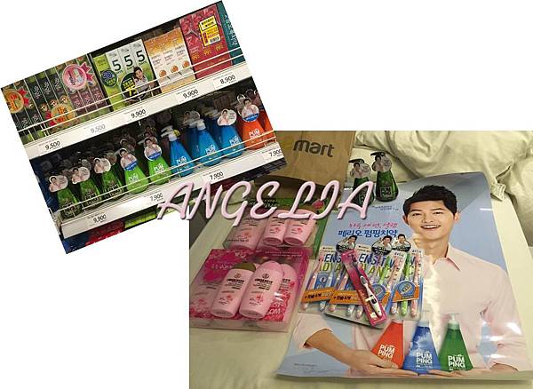 好慘,只好快、狠、準拿了牙膏還有歐巴代言的牙刷,也隨便拿了洗髮精就結帳了