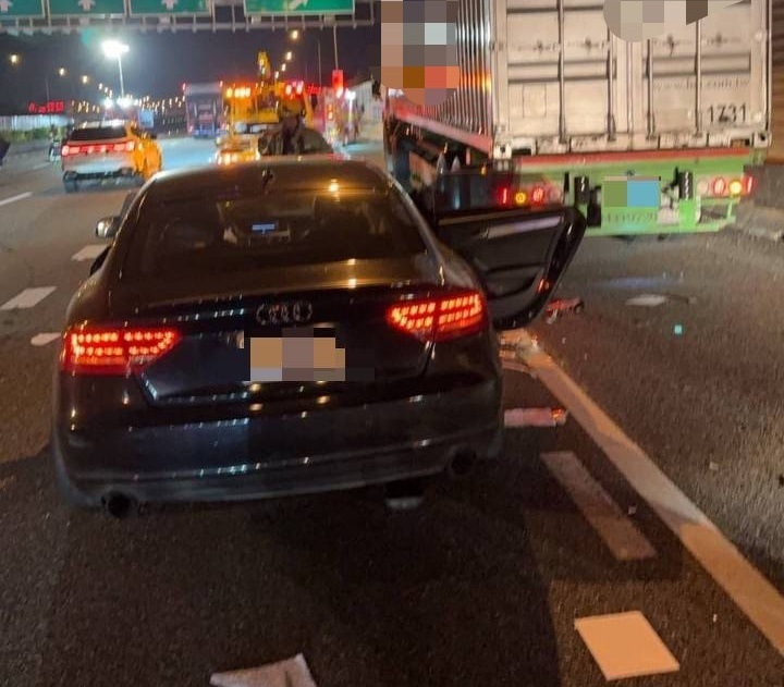國道公路警察局第一公路警察大隊表示,勤務指揮中心於11日0時43分接獲通報,現場有兩部大貨車發生碰撞,其中胡姓駕駛受困。警消獲報後趕抵,以破壞器具協助脫困,並立即將人送往林口長庚醫院急救,仍宣