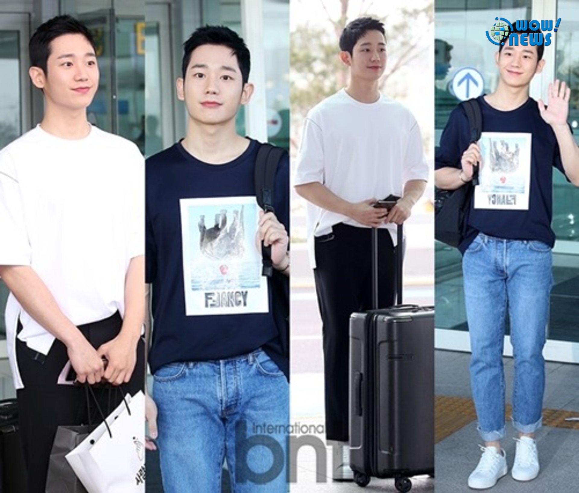 本月初, 丁海寅通過仁川國際機場飛往曼谷參加粉絲見面會。照片中丁海寅此次也是以一身簡單休閑的裝束現身於機場。身穿一件複古風的黑色T恤和牛仔褲以及一雙白色單鞋,展現出簡單而又大方的休閑風格。另外丁海寅還攜帶了一件黑色背包進行搭配,從而為他增添了青春陽光魅力。