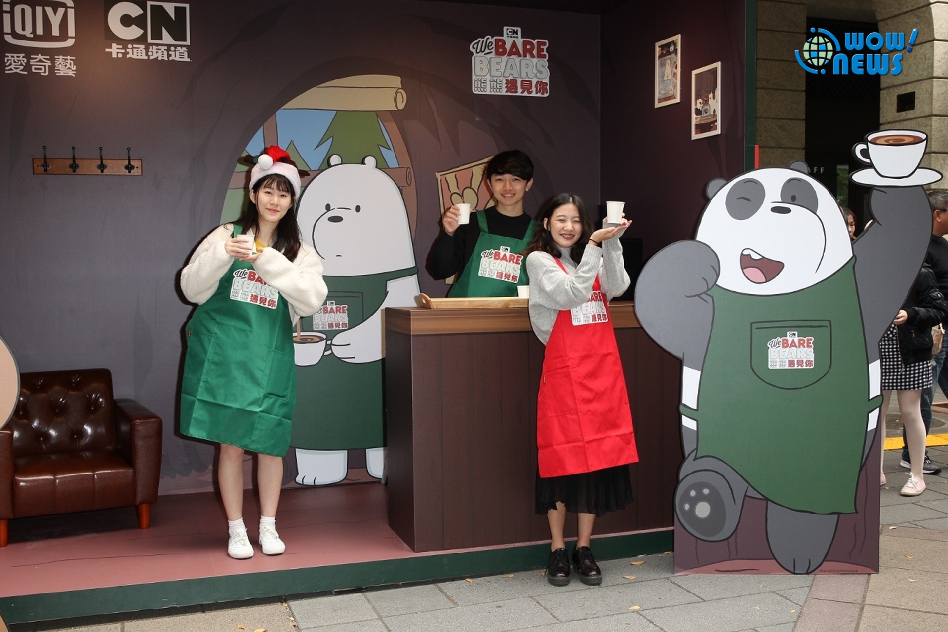 充滿溫馨奇趣的「熊熊熱巧克力屋」本次原汁原味打造出生動的卡通場景,由樂觀外向的棕熊大大、愛幻想的熊貓胖達站在門口左右,端著熱呼呼的飲品迎接賓客,而擁有好廚藝的北極熊阿極則為大家細心調配著熱巧克力,將於活動期間的指定時段免費為大家奉上限量熱巧克力,歡迎大小朋友來熊熊家坐坐,體驗熊熊招待的座上賓,天氣再冷都將被熊熊三兄弟溫暖!卡通頻道更精心準備熊熊工作圍裙,每個人都有機會變成「熊熊遇見你」的一員,一起成為工作好伙伴!