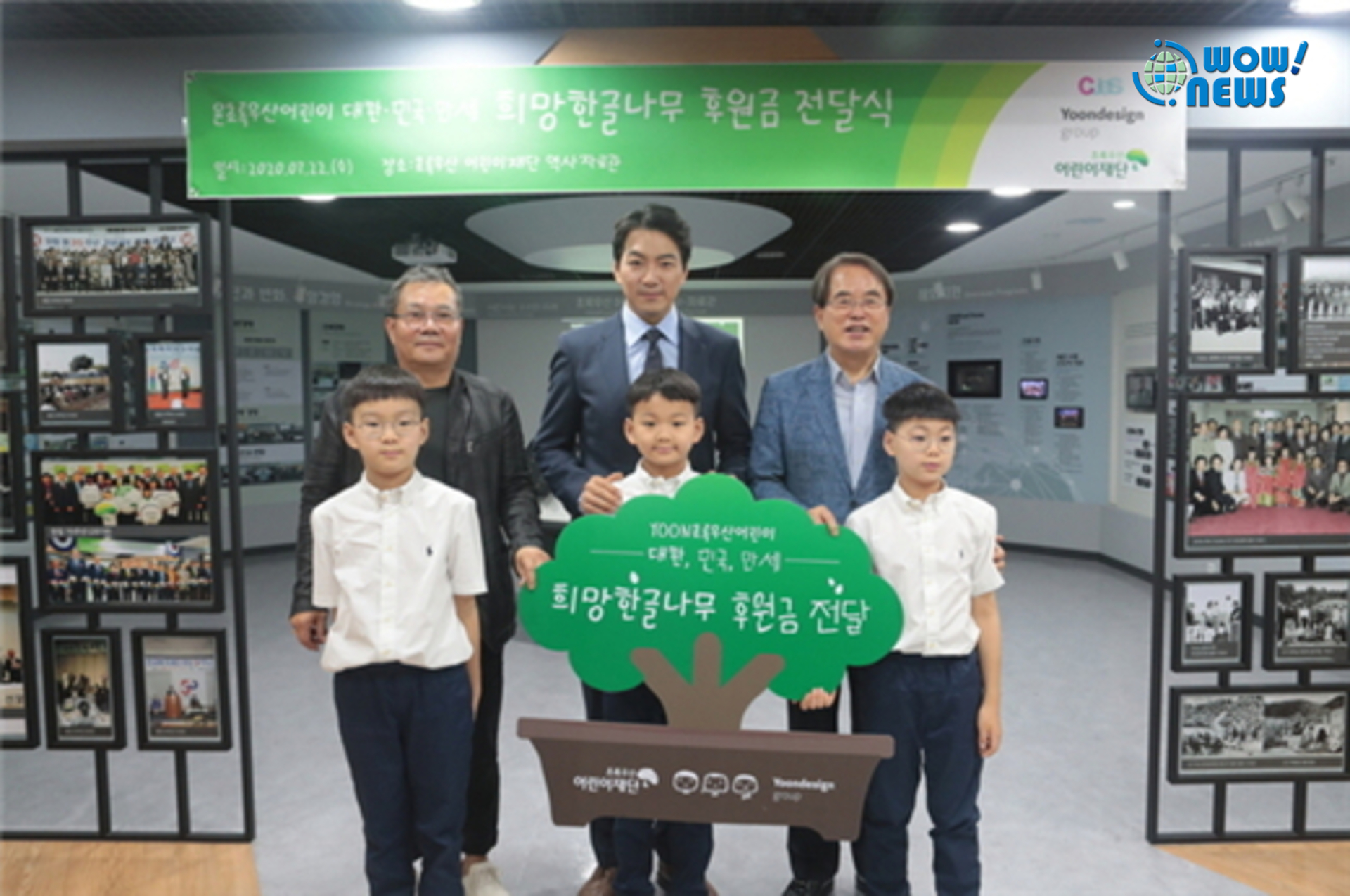 23日,綠傘兒童財團表示舉行了演員宋一國及三胞胎(大韓、民國、萬歲)以才能捐獻方式參與的“Yoon綠傘兒童大韓·民國·萬歲”希望韓文樹(暫譯)後援金轉交儀式。