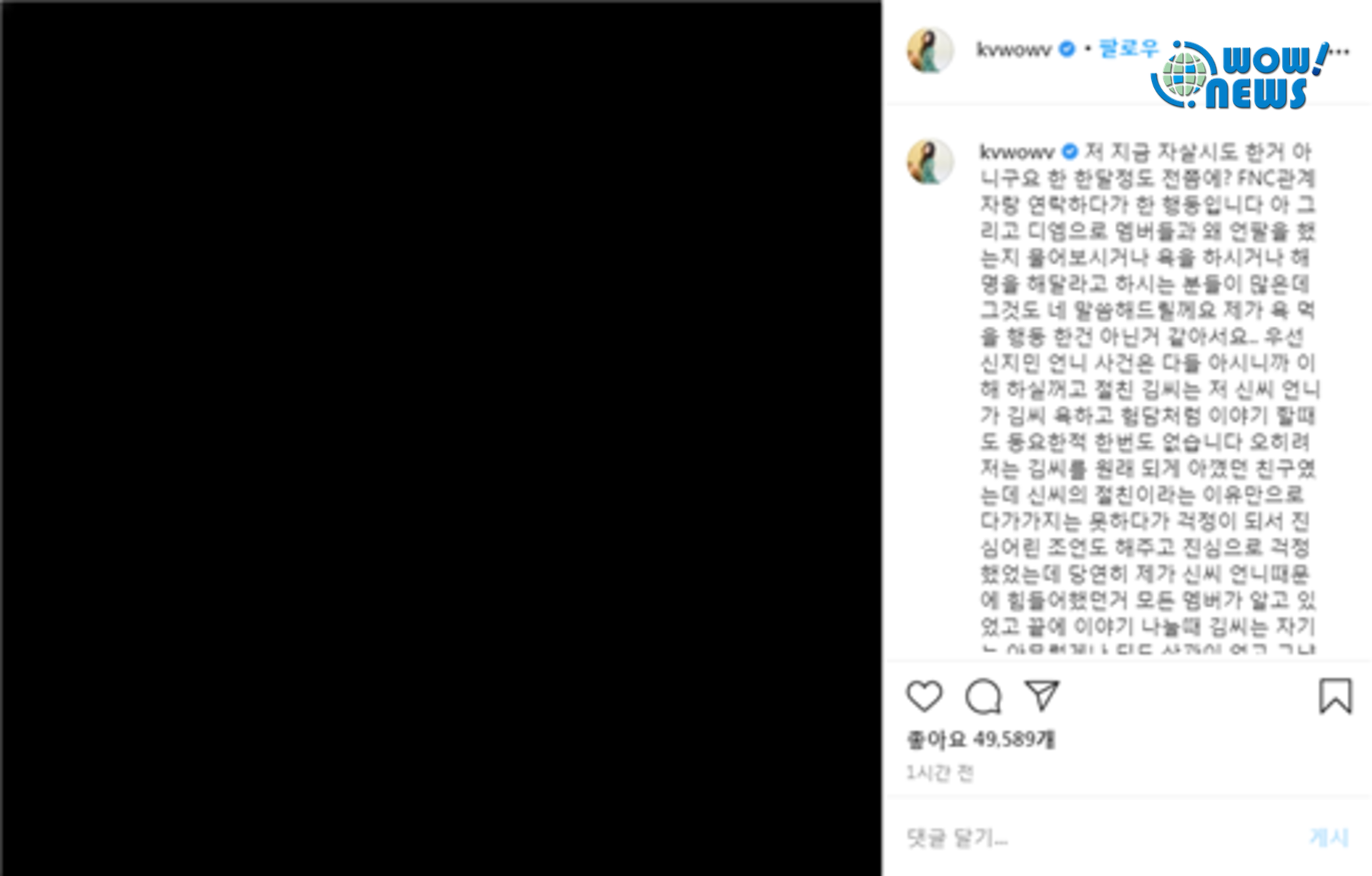 首先,申智瑉姐姐的事件大家都知道,至親金某在申某姐姐罵她或惡言相向時,也從未動搖過。相反,我本來非常疼愛金某只不過因為她是申某的至親,所以沒能太接近她。後來因為真心擔心她提了一些建議,當然所有成員都知道我因為申某而辛苦。在最後交談時,金某表示:“我隨便怎樣都沒關系,只是不喜歡這種情況。”但從我的立場上看她同樣也是旁觀者,而且說得那句話非常讓我心寒。
