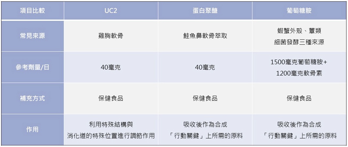 UC2、蛋白聚醣、葡萄糖胺比一比/製表:營養師輕食