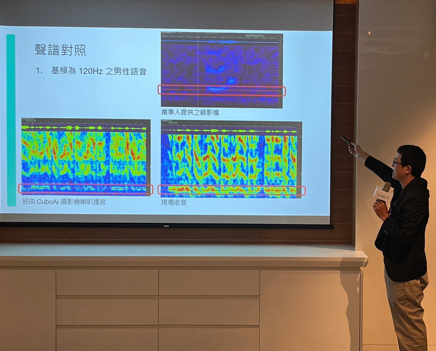為了進一步確定該異音的來源,CuboAi 雲云科技聯繫了第三方公證單位「瓦器聲紋鑑識實驗室」進行專業的聲音分析。瓦器聲紋鑑識實驗室發言人韓先生表示:「影片中的聲音並非透過 CuboAi 雲云科技的產品所發出,而是來自於現場所收錄到的環境音。」
