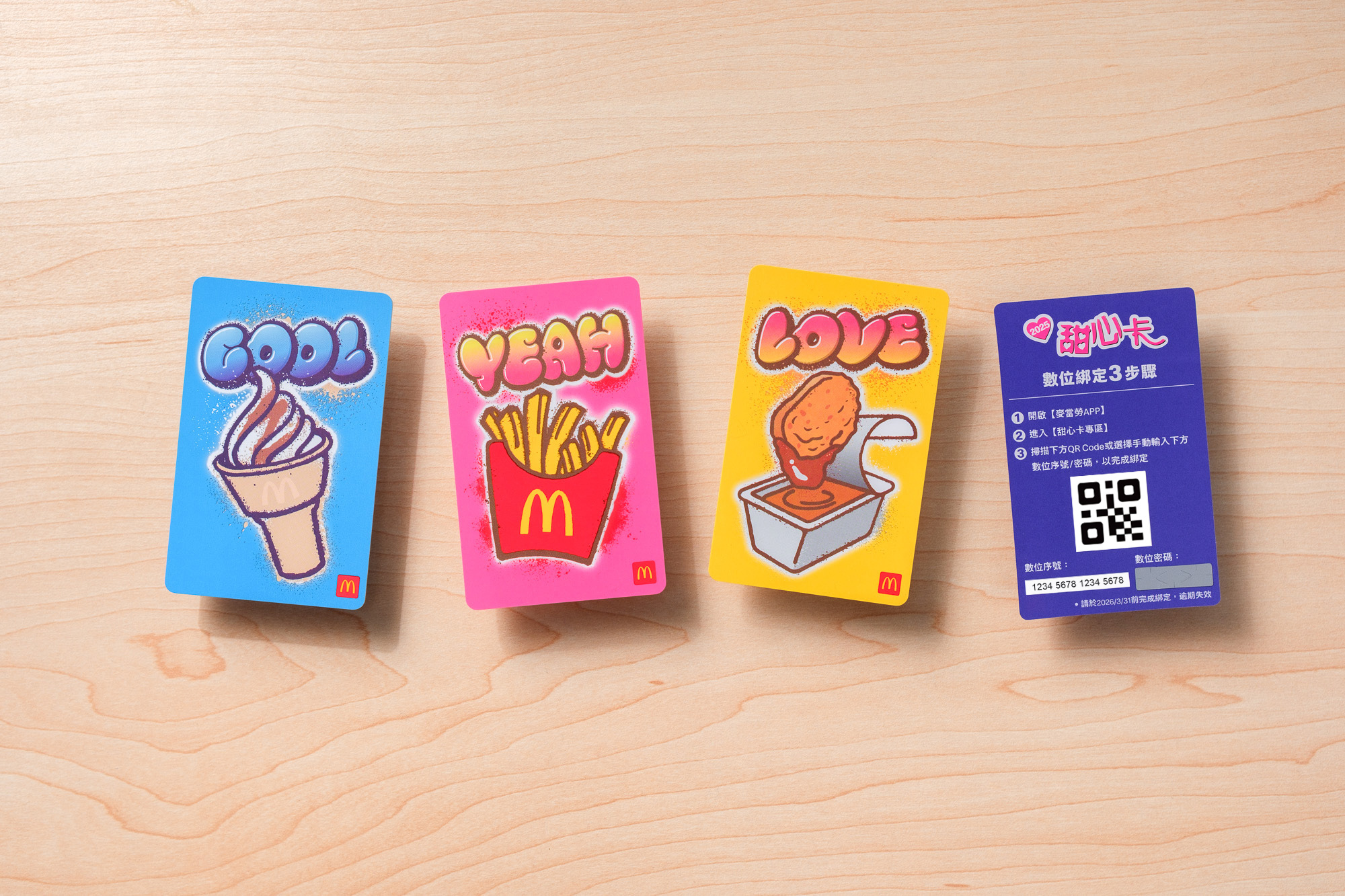 - 綁定APP:進入麥當勞APP「甜心卡專區」,掃描數位序號QR Code,即可完成綁定。