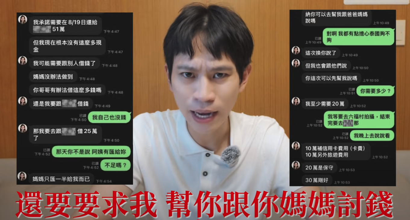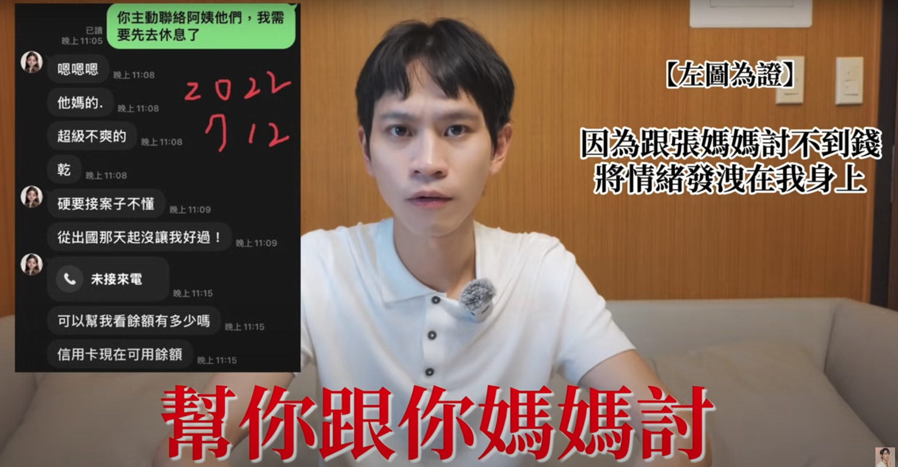 ▲▼家寧常拜託Andy幫她跟張媽媽要錢,讓她可以出國、高額消費。(圖/翻攝自Andy老師YT)