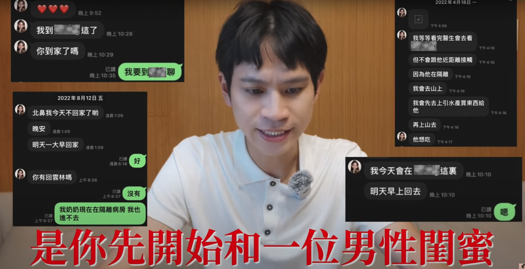 Andy提到,家寧早在2021年就與男閨蜜過從甚密,「兩人頻繁的過夜、住他家,頻繁的跟他出國,一次去就去一個月,頻繁的高額消費,錢還要我人在台灣幫你跟媽媽討,甚至在疫情中,我身體不舒服,你也生病了,是要隔離的,你竟然優先跑過去照顧這位男閨蜜。」最誇張的是,家寧甚至在Andy奶奶過世當天,還要求他幫忙籌錢讓她出國玩,這件事成為他心中永遠的痛,也讓他感到極度失望。