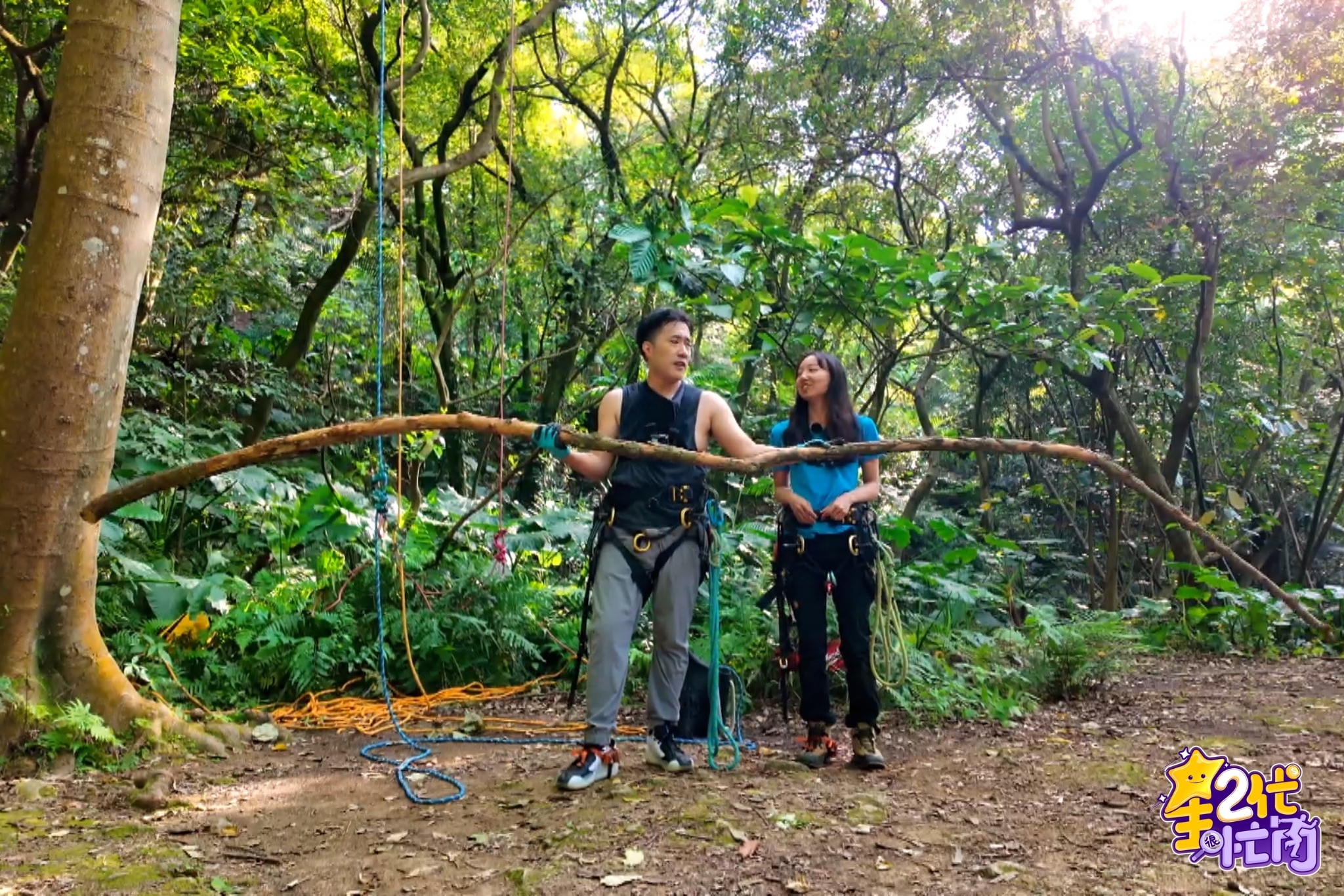 ▲ 余祥銓挑戰高空攀樹師。(圖/Yahoo《星二代很忙內》)