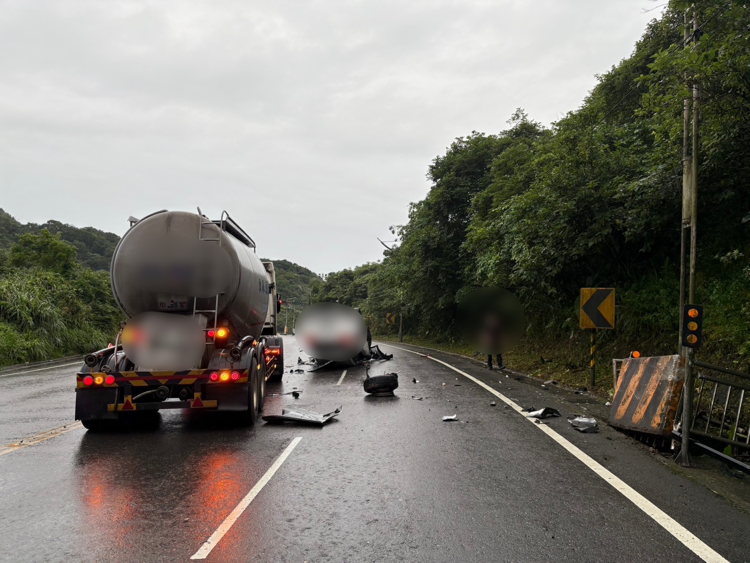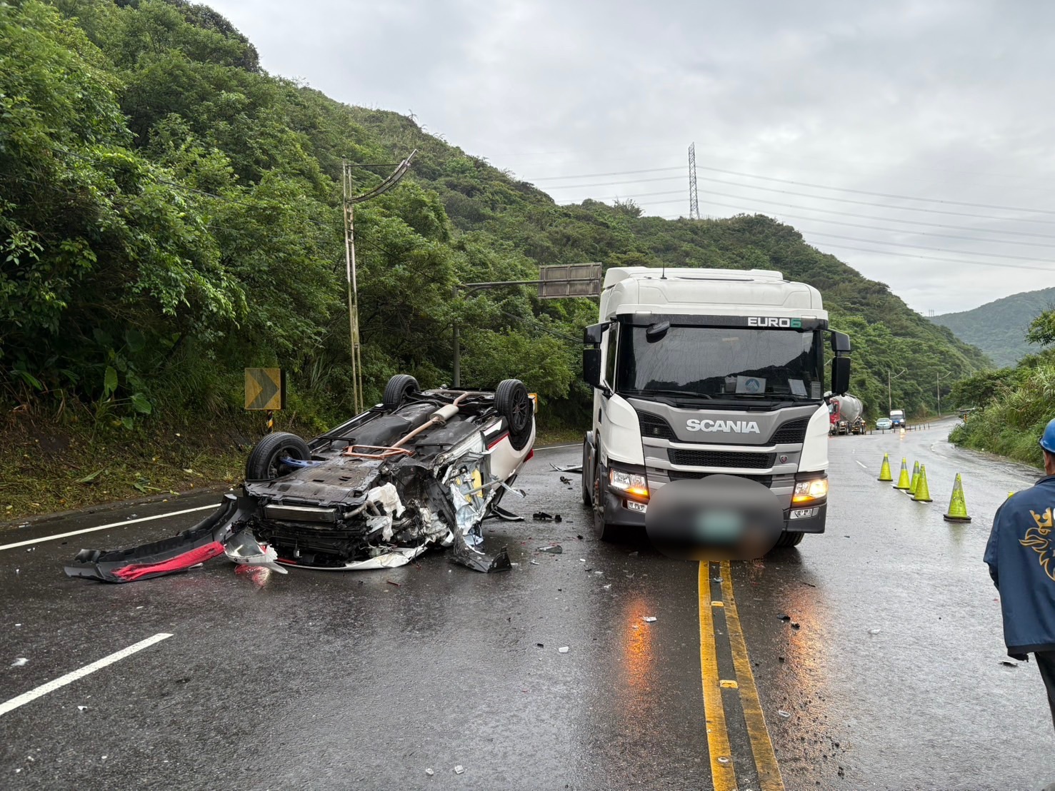 據了解,肇事的劉姓男子(30多歲)駕駛自小客車行經事發路段時,疑因操作不慎,失控撞上右側護欄後翻車,隨後又波及由56歲何姓男子駕駛的營業貨運曳引車。劉男手腳擦挫傷,由救護人員送往基隆長庚醫院治療。