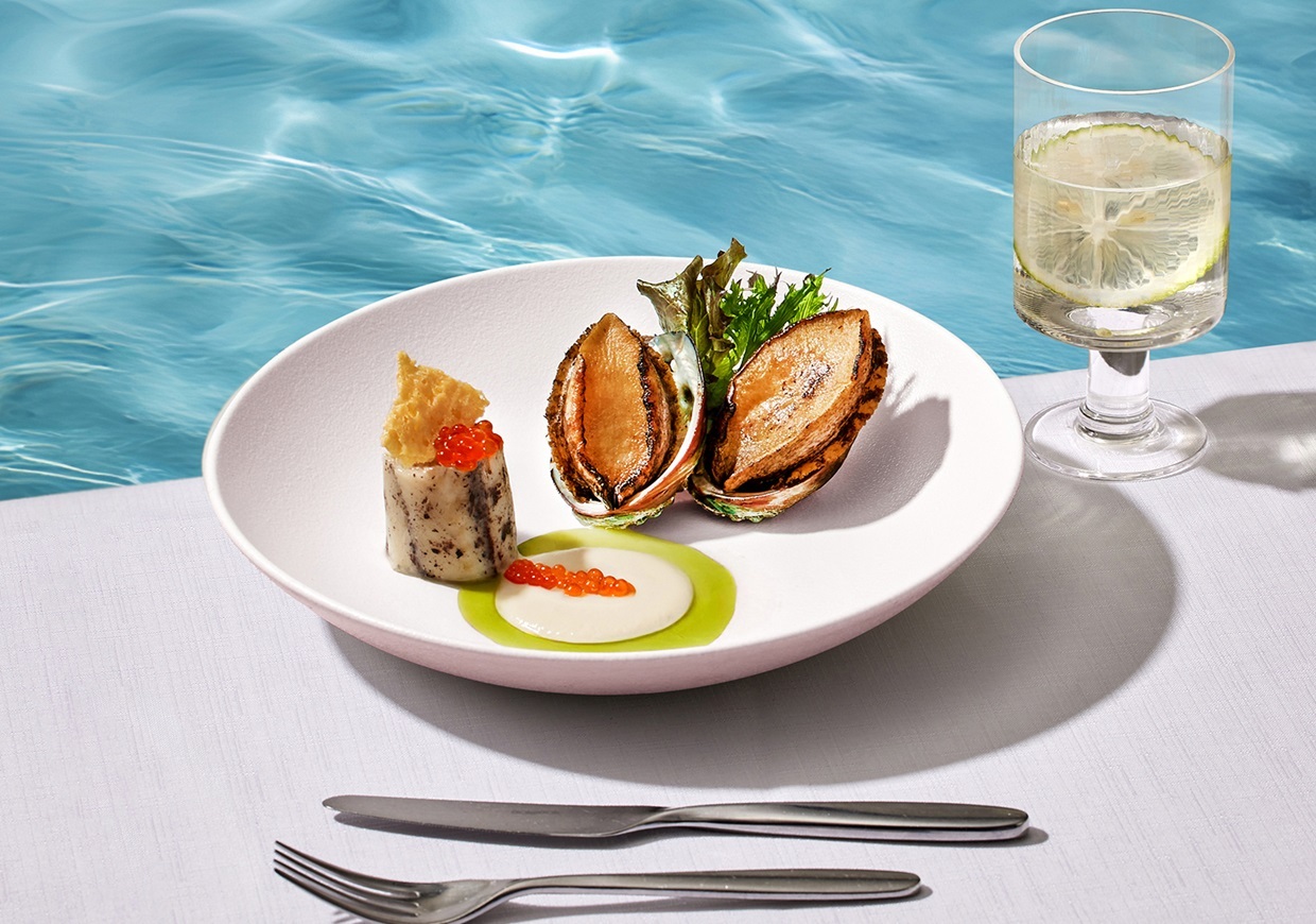 ▲王品牛排推出夏季贈菜,7月底前內用2客套餐,同桌其中一位出示綠、白或紅任一顏色配件,贈柚香鮑魚佐季節鮮魚。(圖/王品集團提供)