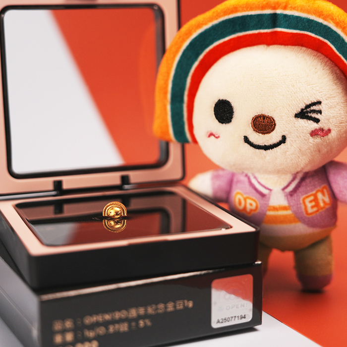 ▲ 細緻工法將OPEN將化身為超萌999純金小金豆,兼具投資與送禮價值,包裝背面可寫上祝福小語。(圖/7-ELEVEN)