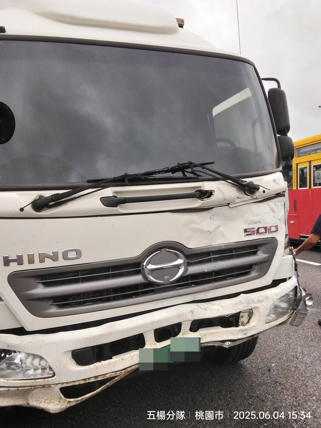 ▲大貨車沒注意車輛回堵,追撞釀連環車禍。(圖/警方提供)