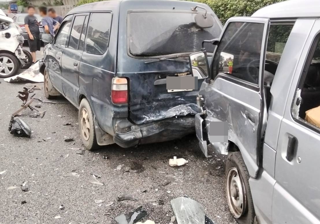 警方表示,55歲陸姓男子駕駛一輛營業用大貨車,行經事發路段時,疑似因未保持安全距離,在車流回堵情況下追撞前方由53歲張姓男子所駕駛的小客車,進而造成連環碰撞,波及其餘6輛車。