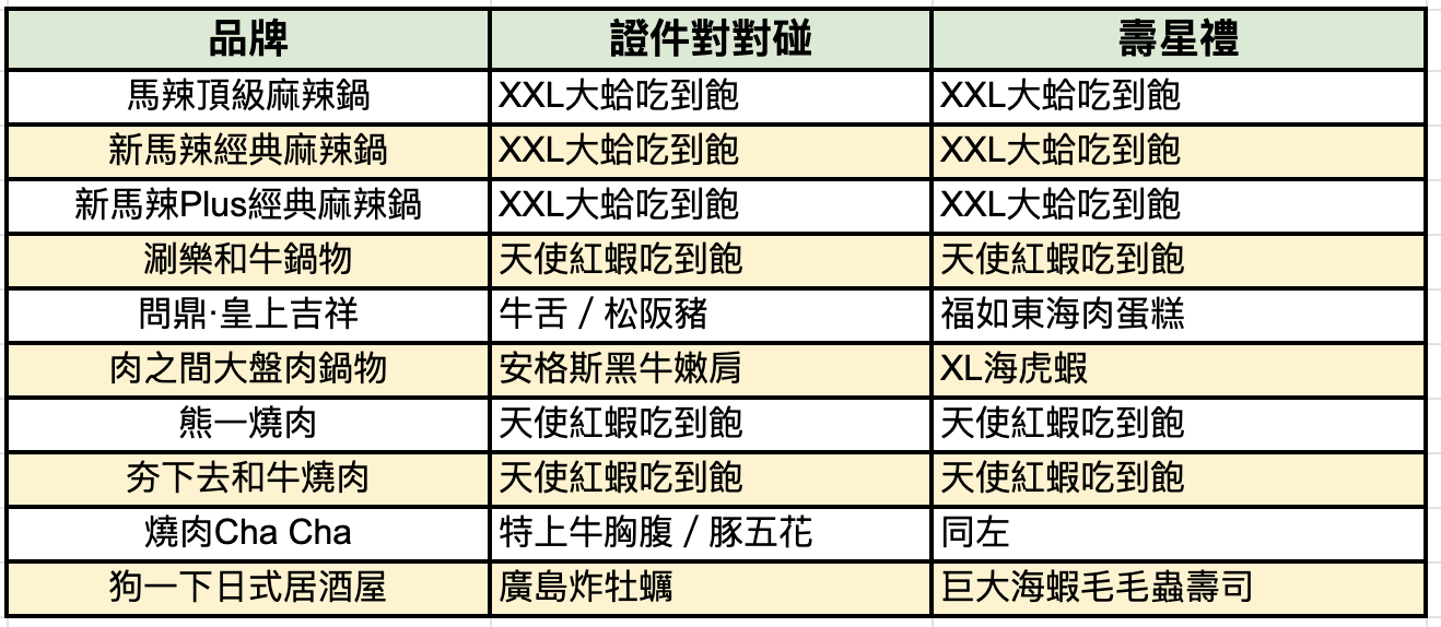 ✅ 詳細門檻與內容依各品牌規定,請參照下方表格