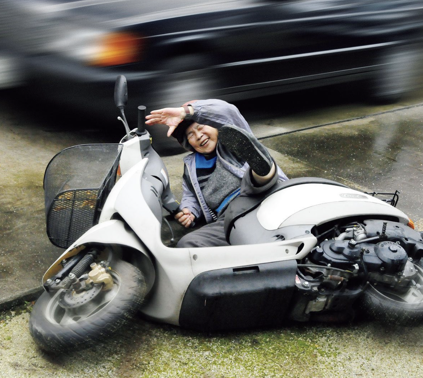 ▲自拍婆婆因一張搞笑摔車照爆紅。(圖/翻攝自西本喜美子IG)