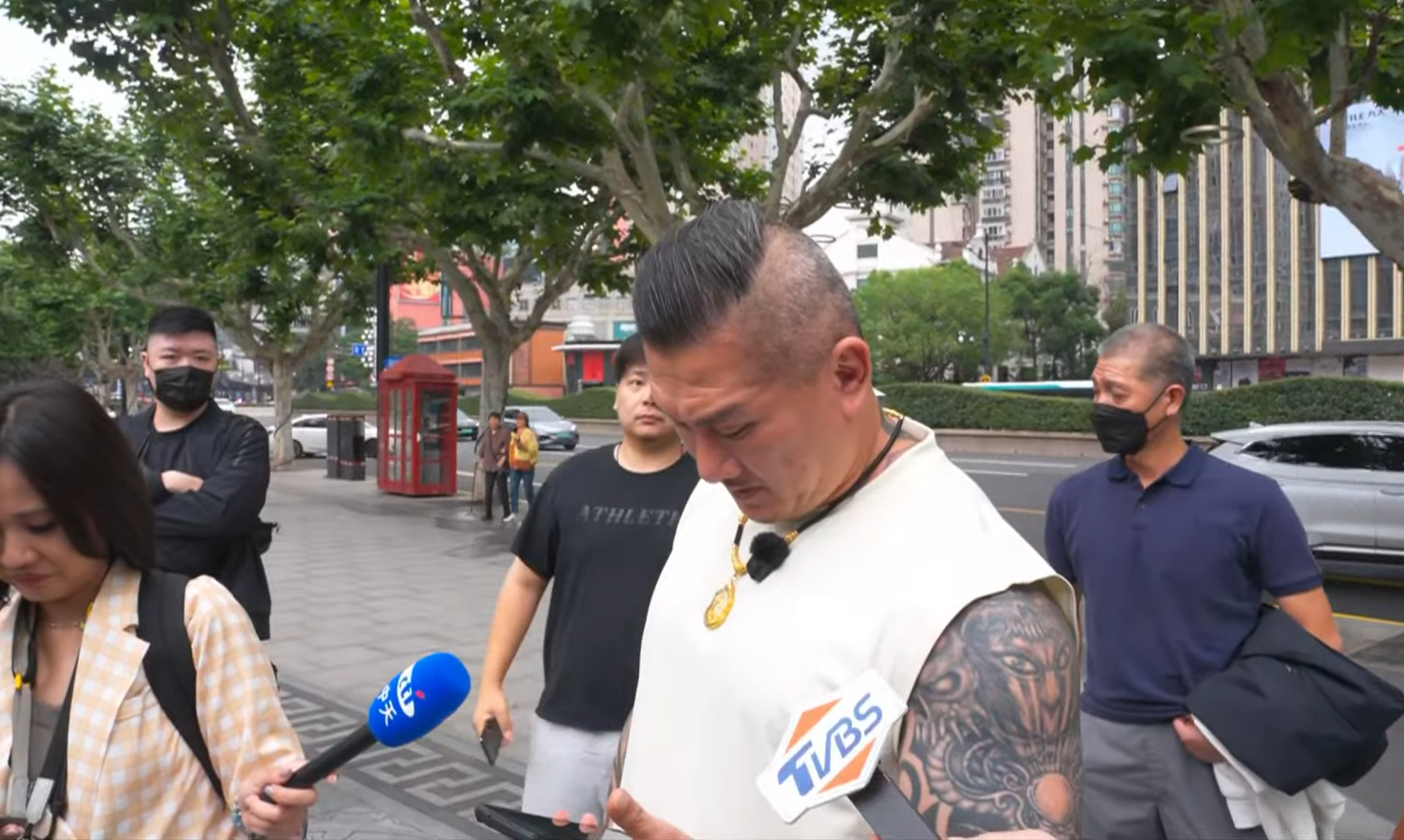 館長一行人今日搭遊覽車前往上海市區觀光,正當他在徐家匯天主教堂外,專心聆聽導遊介紹時,一名中國民眾突然靠近詢問:「陳先生你好,請問你是哪國人?」面對中國民眾突如其來的問題,館長先是尷尬不語,接著搖頭嘆氣,接著轉頭向身旁的記者說:「有沒有,所以不只台灣,他們大陸也是要逼你表態」,隨後轉移視線,抬頭仰望天空,場面相當尷尬。