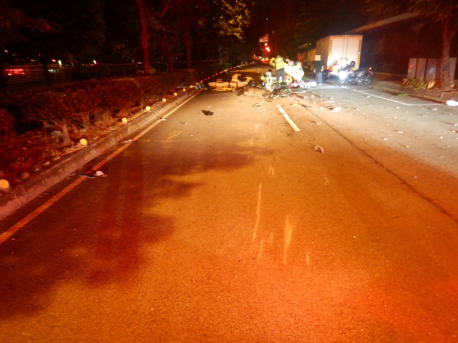台中市北屯區今(25)日凌晨2時許發生一起重大車禍事故。一名51歲廖姓男子騎乘普通機車,疑似逆向行駛祥順路南向路段,與對向正常行駛的大型重機發生激烈碰撞。事故造成廖男傷重送醫後不治,騎乘重機的27歲潘姓女子則全身多處擦挫傷,目前仍在醫院救治中。