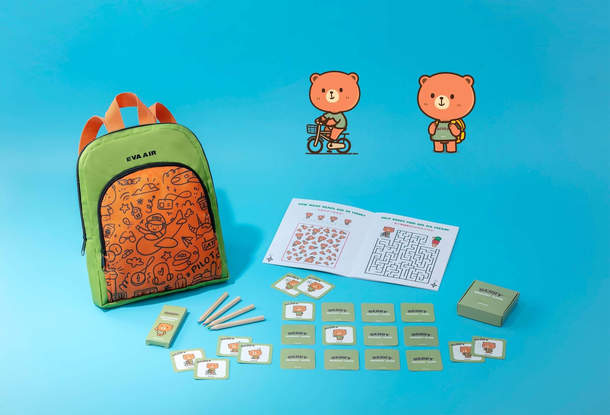 為增添親子旅程的歡樂回憶,長榮航空特別準備暑期限定兒童包,凡搭乘由台灣出發航班的兒童旅客,皆可索取。兒童包內含可愛航空風格後背包、互動遊戲書及記憶遊戲卡等益智好物,陪伴孩子展開精采假期。