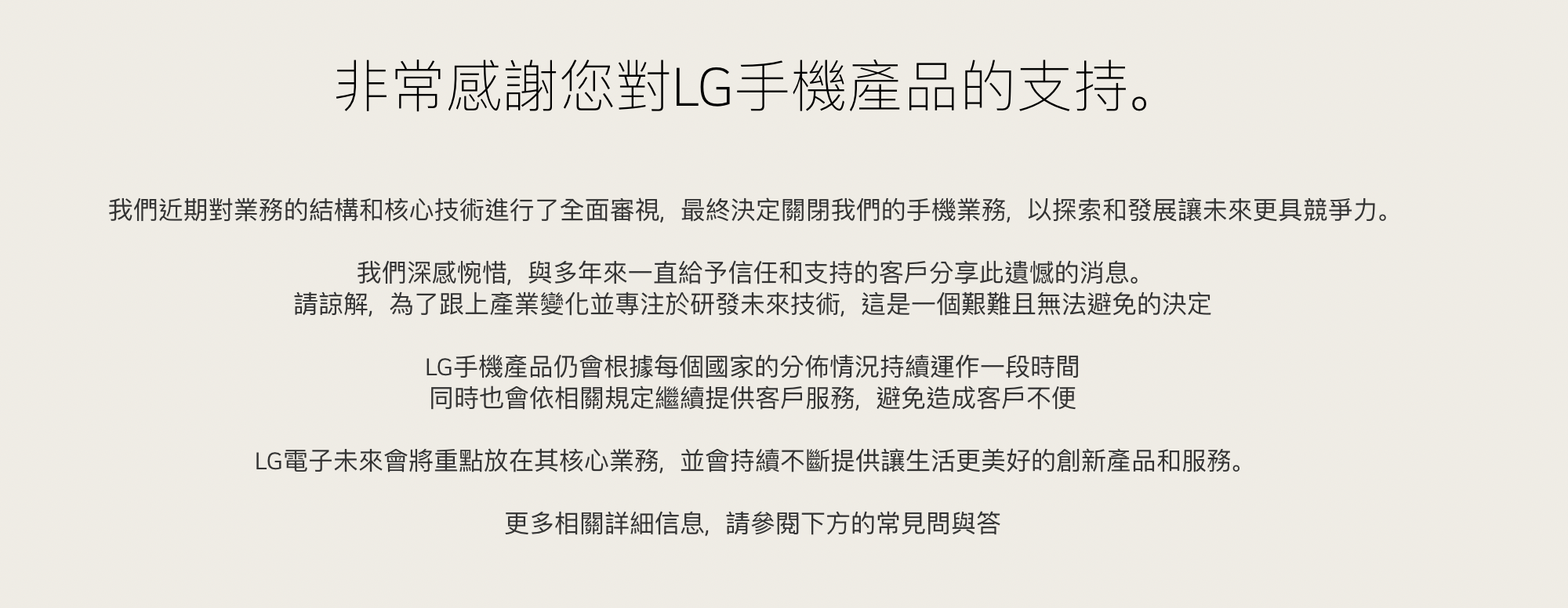 隨著智慧型手機時代來臨,LG 手機逐漸失去市場優勢。根據LG官方公告,自2025年6月30日凌晨0時起(韓國時間),旗下所有手機產品將停止提供下列三大服務: