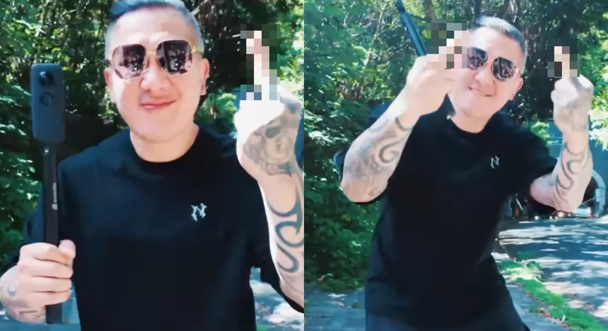 館長自強隧道前大跳「中國洗腦神曲」 狂比中指嗆青鳥:吃X吧