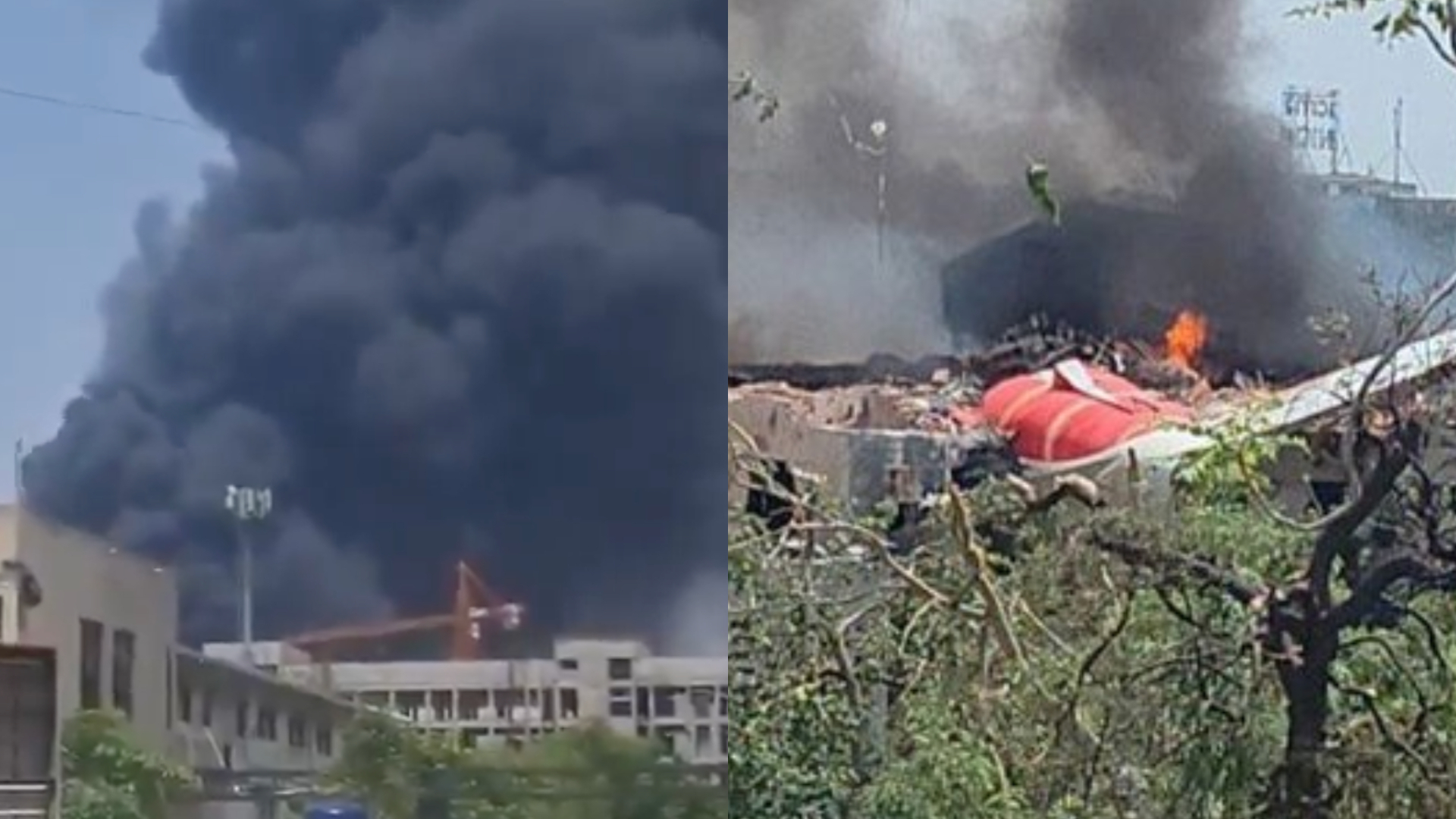 ▲印度航空一架波音787-8客機起飛不久後墜毀於一處學生宿舍,悲釀260死。(圖/翻攝自X)