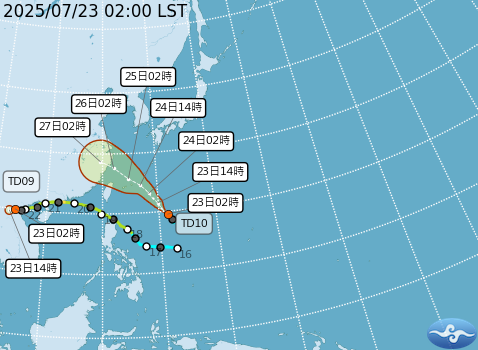 根據日本氣象廳顯示,位於菲律賓東方海面的熱帶性低氣壓已於今(23)清晨8時增強為今年第7號颱風「范斯高」(Francisco)。根據預測路徑,范斯高將朝西北移動,通過琉球群島機率高,最快週四、週五最接近台灣東北海域。氣象署強調,目前為輕度颱風等級,是否發佈颱風警報,仍需觀察其路徑是否南偏及暴風圈擴大情況。