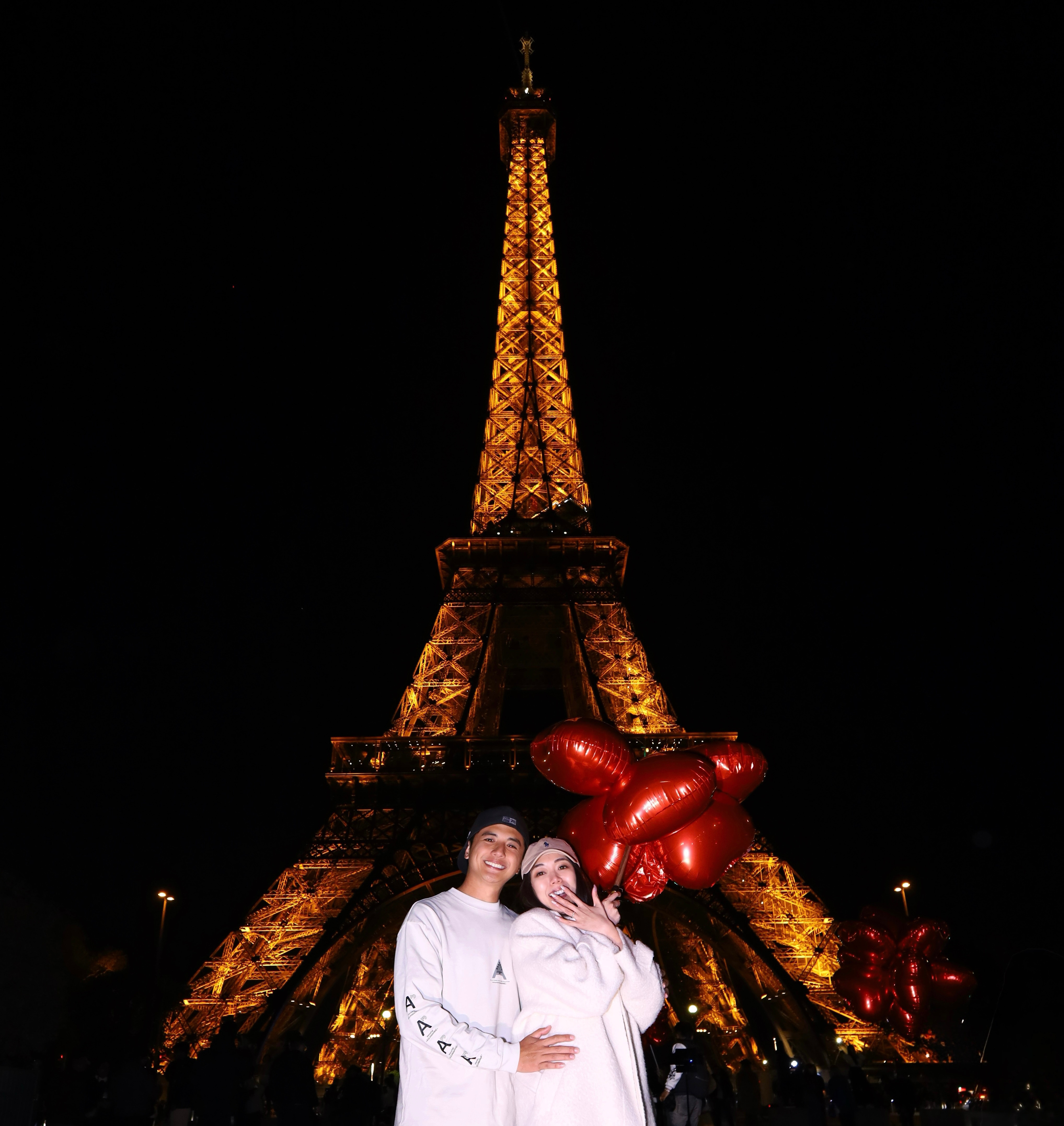 ▲ 曾子余(左)在巴黎鐵塔前浪漫向Grace求婚。(圖/TVBS)