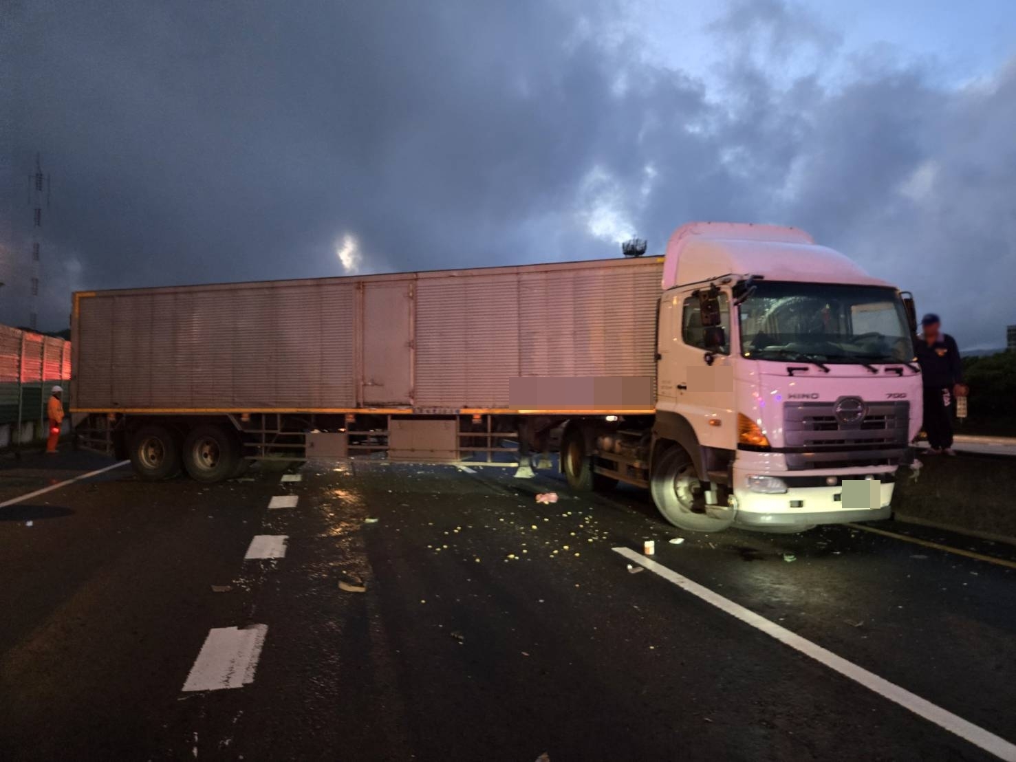 不久後,54歲潘姓男子駕駛的營半聯結車疑因閃避不及,再次撞上李男車輛,造成聯結車打橫橫跨車道,一度導致全線封閉。消防人員與救護車獲報趕抵後,緊急將受困傷者脫困送醫。