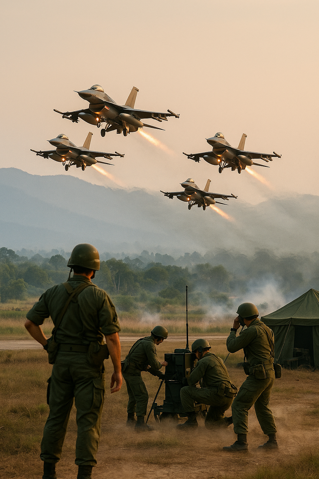 在空軍方面,泰國擁有至少11架瑞典製「獅鷲」(Gripen)戰鬥機,以及數十架美製F-16與F-5型號戰機,形成強大的空中戰力。相比之下,柬埔寨目前缺乏具備作戰能力的空軍,這是兩國軍力差距最為明顯的領域。