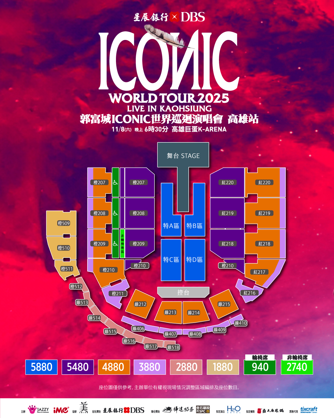 ▲ 《星展銀行-郭富城ICONIC 世界巡迴演唱會》2025高雄站座位圖。(圖/爵士娛樂、iMeTW)