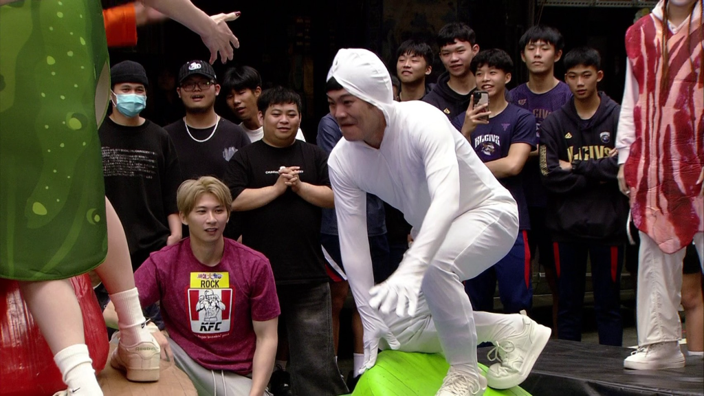 哨音響起後,參賽者必須想辦法吃掉隊友釣竿上的吐司,用時最短的隊伍即可獲勝。首先由胡瓜、賴慧如與宜芳親自示範,三人動作笨拙、舌頭不斷伸出,畫面相當逗趣。胡瓜為了搶吃吐司,甚至擠出誇張表情,模樣宛如「海狗」,現場笑聲不斷。接著由學生組上場挑戰,展現驚人默契,僅花30秒就完成任務。藝人組則派出籃籃、大飛與ROCK應戰,三人釣竿亂晃、節奏大亂,籃籃為了咬吐司甚至從椅子上跌落,笑翻全場,最終以69秒成績敗給學生組,獎金拱手讓出。