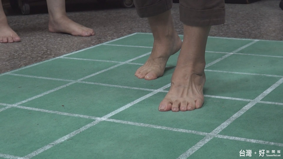 跟著老師口令,順著節奏、在方塊踏墊上自信踏出步伐向前趴趴走,將近90歲的孫奶奶好開心,還說以後出門都可以不必再用拐杖了!