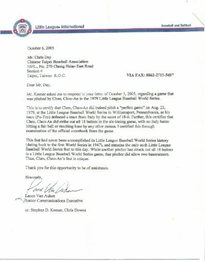 中華民國棒球史上有一項非常震驚世界少棒聯盟歷史的紀錄,陳昭安1979年8月24日在威廉波特世界少棒賽迎戰歐洲代表義大利隊締造連續18K完全三振記錄後而震驚中外,但在風光凱旋回國後的陳昭安在往後棒球的路並不順遂,他在學生時代手臂嚴重運動傷害被迫離開球場。