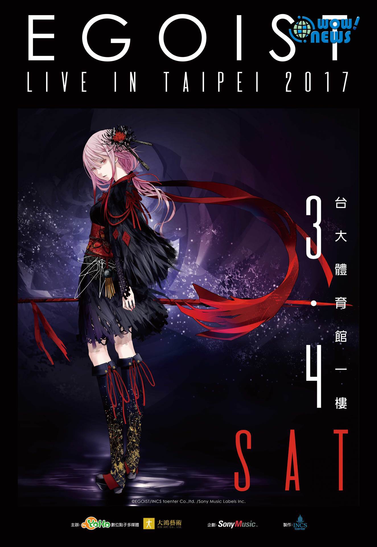 「EGOIST」不但在2016年舉行了首次粉絲俱樂部會員限定參加的全國巡演,於東京、大阪、名古屋、北海道、福岡展開總計六場的巡迴演唱,演出範圍逐漸涵蓋日本全國,聲勢持續上漲,同時也積極拓展海外觸角,於台灣、香港、上海、新加坡都曾舉行海外演唱會,造成轟動,動漫迷千萬不可錯過 !「EGOIST」演唱會將於1/7 中午11:00,KKTIX、全家Famiport、安利美特台北總店開始全面搶票!