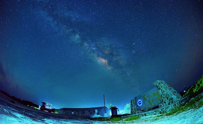 東沙環礁國家公園碑附近幾乎零光害,肉眼就可以看見銀河。