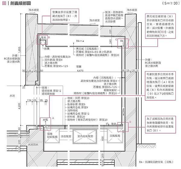 天花板的內側規劃了空氣對流空間,來調節熱環境。