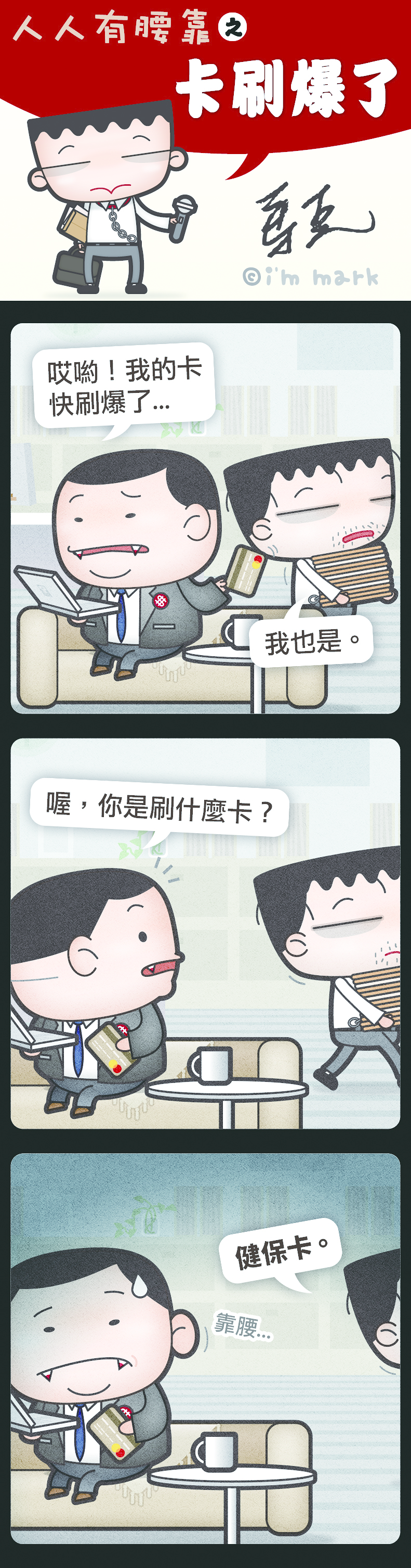 「靠腰......」穿著白襯衫、掛著鐵鍊領帶、臉上總是有著黑眼圈,在面對職場各種鳥事時,因為無力抵抗而默默承受,時常以這句話做為故事結尾的上班族「馬克」從2008年在無名小站第一篇圖文開始,今年也已邁入了第十年,不僅陪著粉絲們一同成長,更是許多人在職場碰到困難時的療癒良藥。